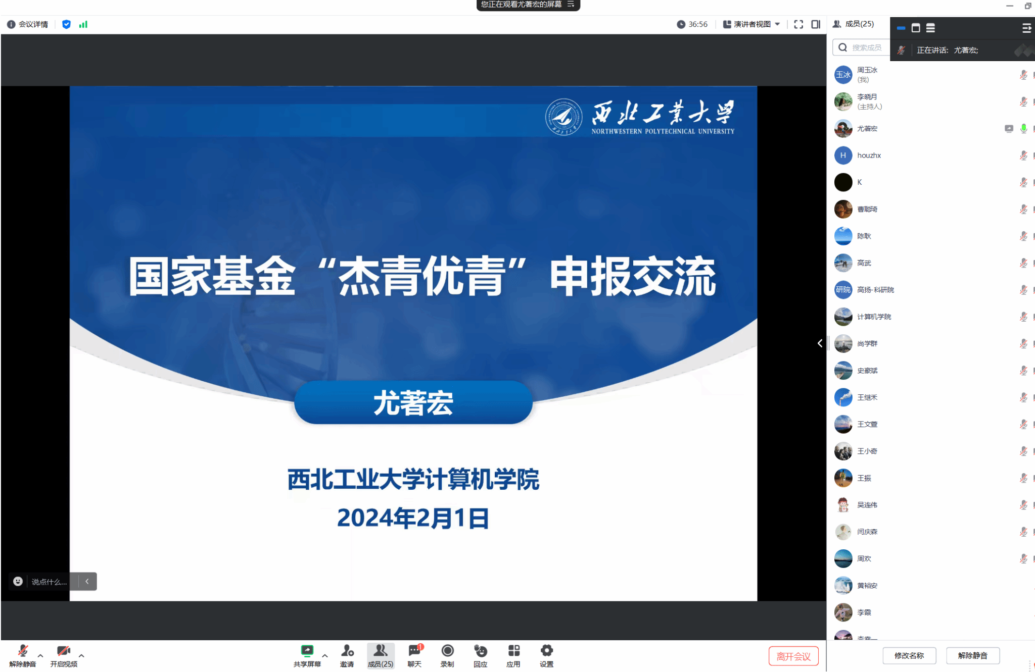 为聚力学校“127”发展目标,进一步强化基础研究,实现“0到1”与“1到0”的双向发力,2月1日下午,计算机学院举办召开国家自然基金杰青和优青申报辅导交流会,尚学群院长,史豪斌副院长、科学技术研究院基础办高扬主任以及本年度申请国家自然科学基金杰青和优秀青年科学基金项目的全体教师参加了本次经验交流会,会议由史豪斌副院长主持。