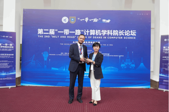 On September 18, the 2nd "Belt and Road" Deans' Forum on Computer Science, hosted by Northwestern Polytechnical University (NPU) and co-organized by Al-Farabi Kazakh National University (KazNU), the NPU School of Computer Science, and the NPU Kazakhstan Branch, was successfully held in Almaty. This forum served as a concrete measure to thoroughly implement the "Belt and Road" Initiative (BRI) and actively respond to the important instruction of "ensuring the success of the NPU Kazakhstan Branch and cultivating more successors for the cause of China-Kazakhstan friendship." The event aimed to promote in-depth cooperation and exchange in the fields of computer science and artificial intelligence among countries along the Belt and Road.